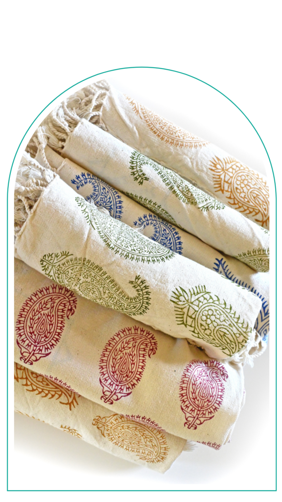 Termeh is typically made from natural fibbers such as silk, wool, or both. The fabric often features intricate designs and motifs, including paisley patterns, floral motifs, and geometric shapes.