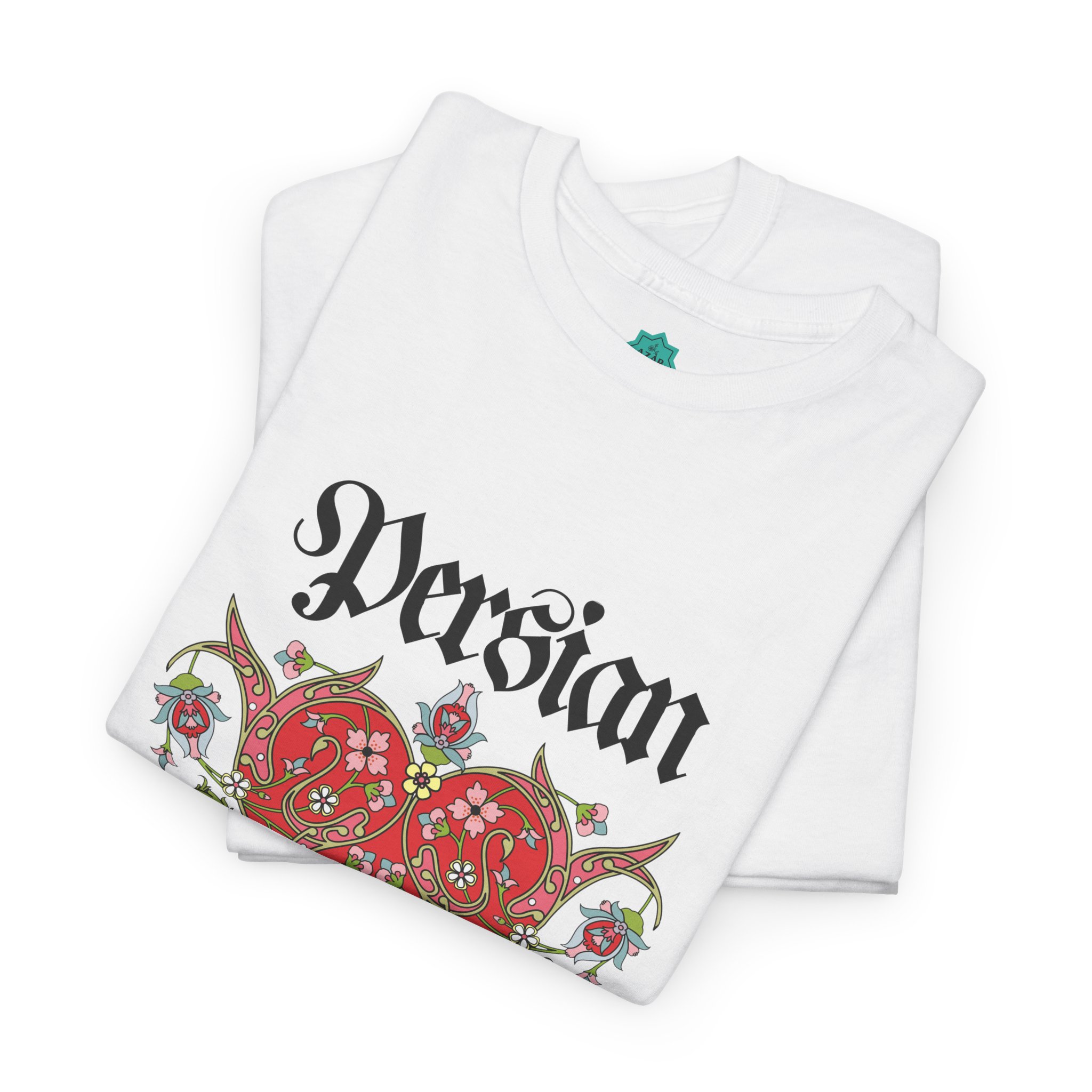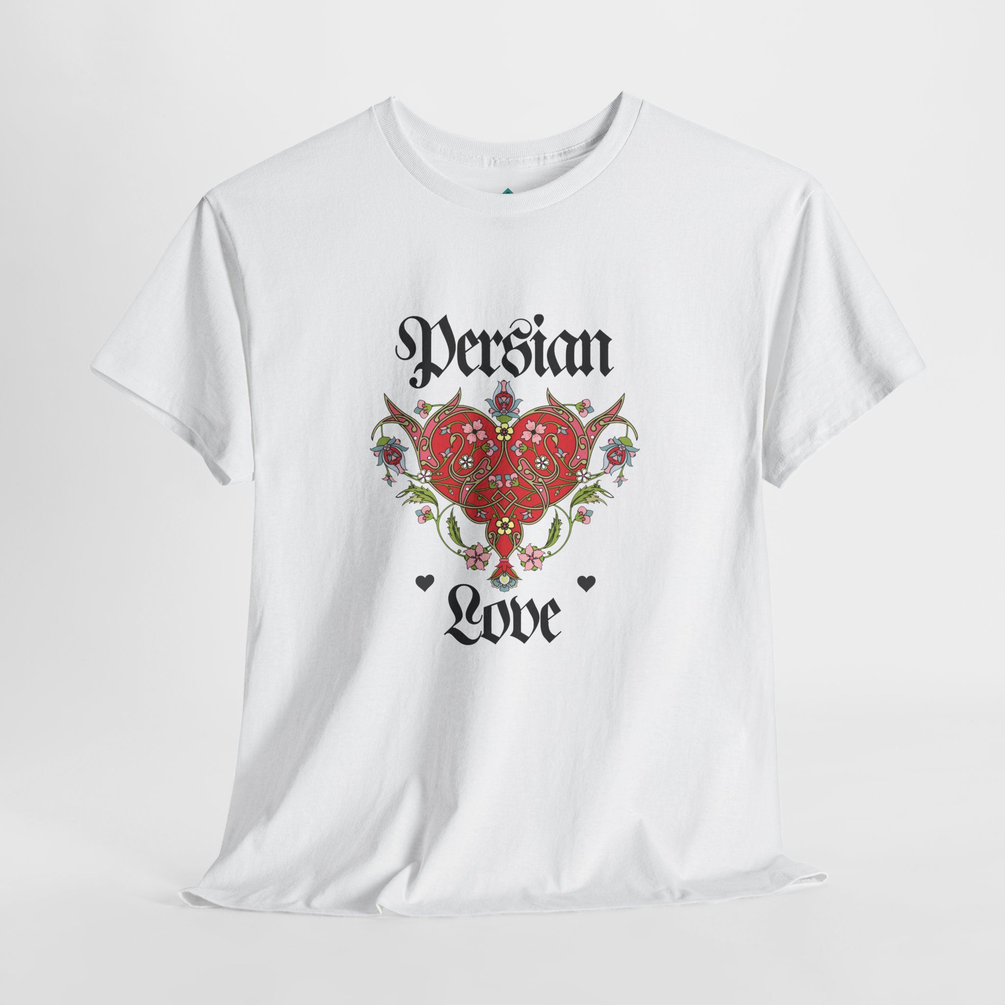 A Persian Love tee that exudes elegance and sophistication. Perfect for those who appreciate intricate designs and cultural motifs. Ideal for casual wear or special occasions, this tee adds a touch of uniqueness to any wardrobe. Relevant for Persian cultural celebrations.