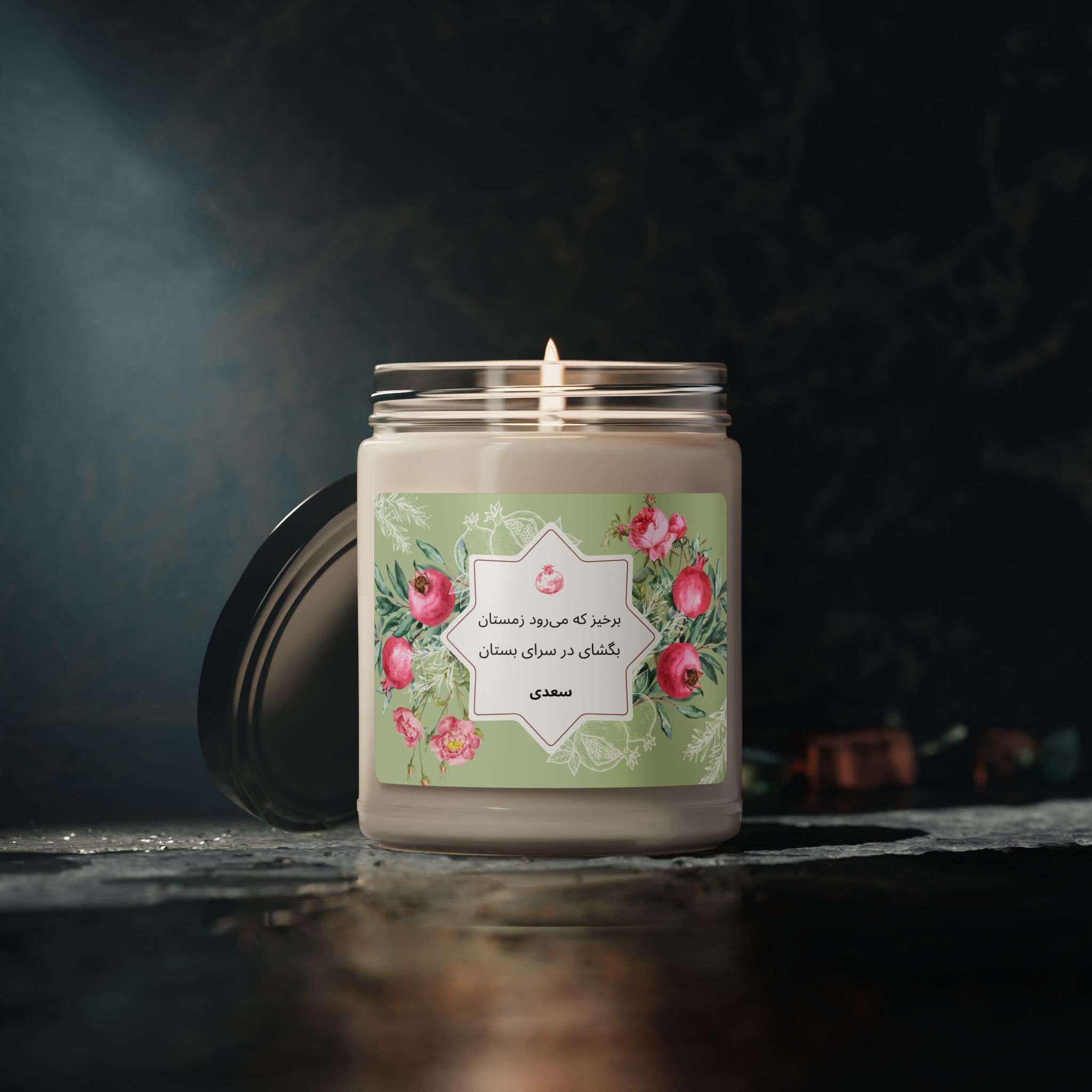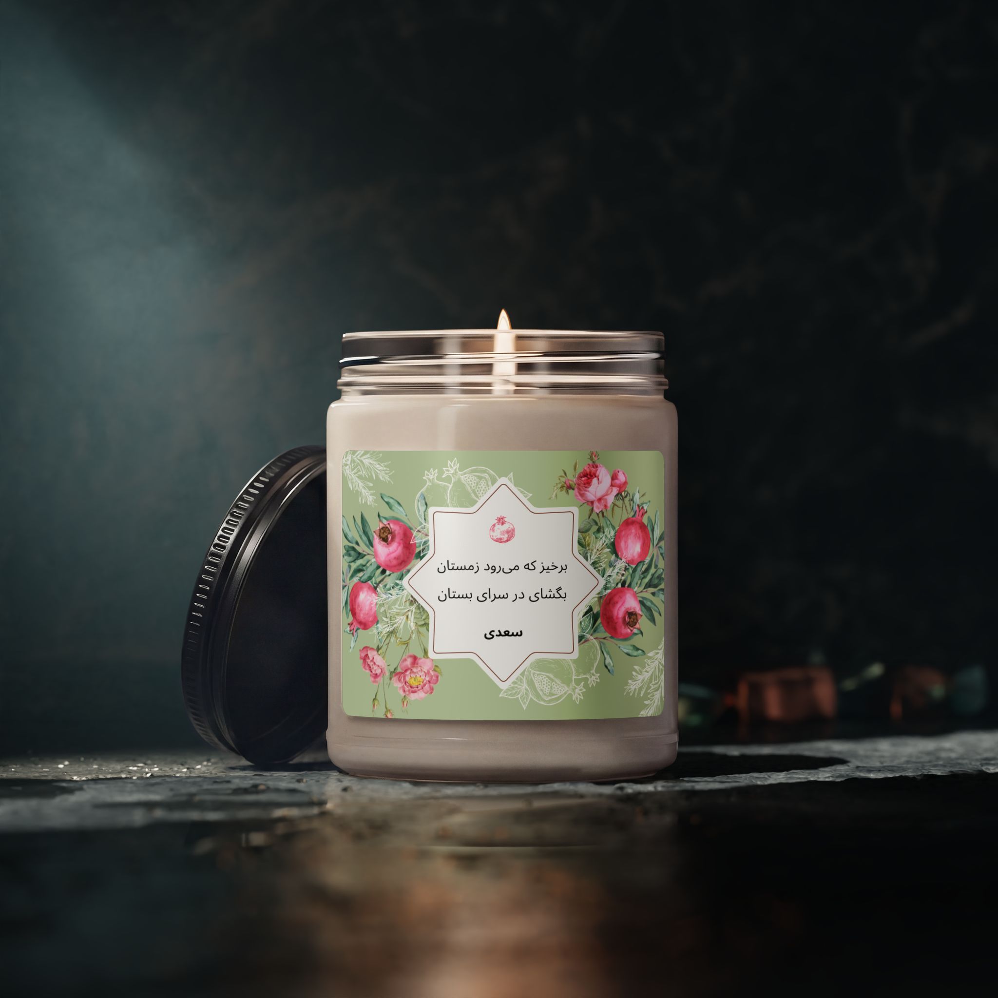 Yalda Green Garden is a hand-poured soy candle that brings a cool, green hush into small moments. Light it and imagine a moonlit courtyard after a rain — dewy leaves, subtle herbs, and the quiet hum of nighttime insects. The clean-burning soy wax and cotton wick keep the glow pure while the reusable glass vessel becomes a keepsake jar when the flame is finished. Choose a scent that matches the mood — a bright cotton-linen breeze, a warm cinnamon-vanilla hug, or a mineral sea-salt hush — and let the scent thread through slow evenings, small rituals, or a calm welcome for visitors. It’s crafted to burn evenly for 50–60 hours, made with natural ingredients and essential oils, and finished with a glossy label that won’t peel away as the candle becomes part of your shelf or windowsill scene.