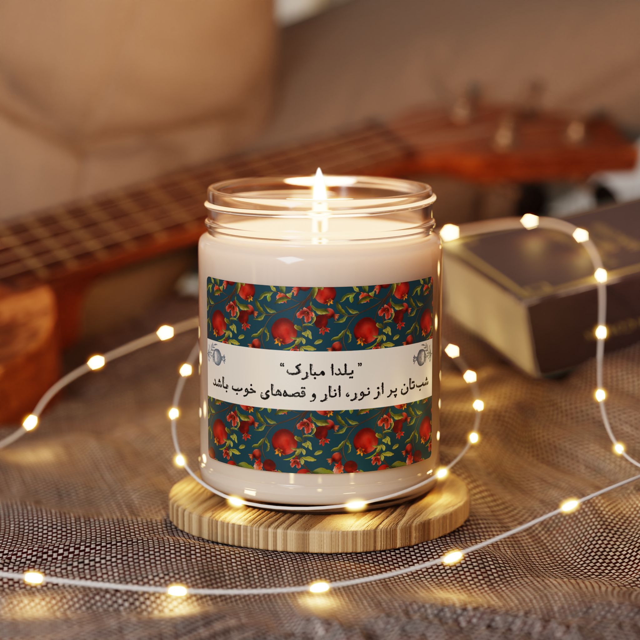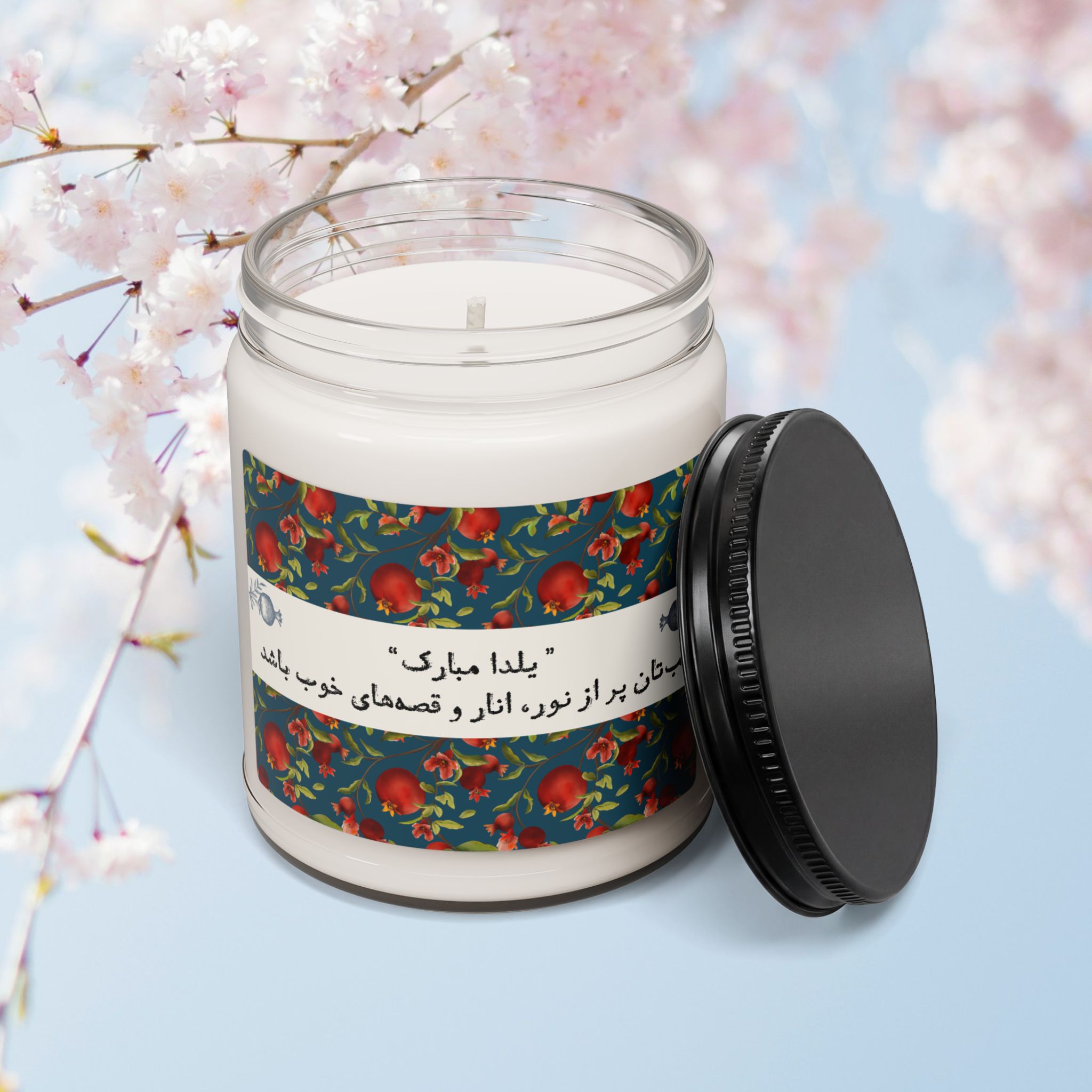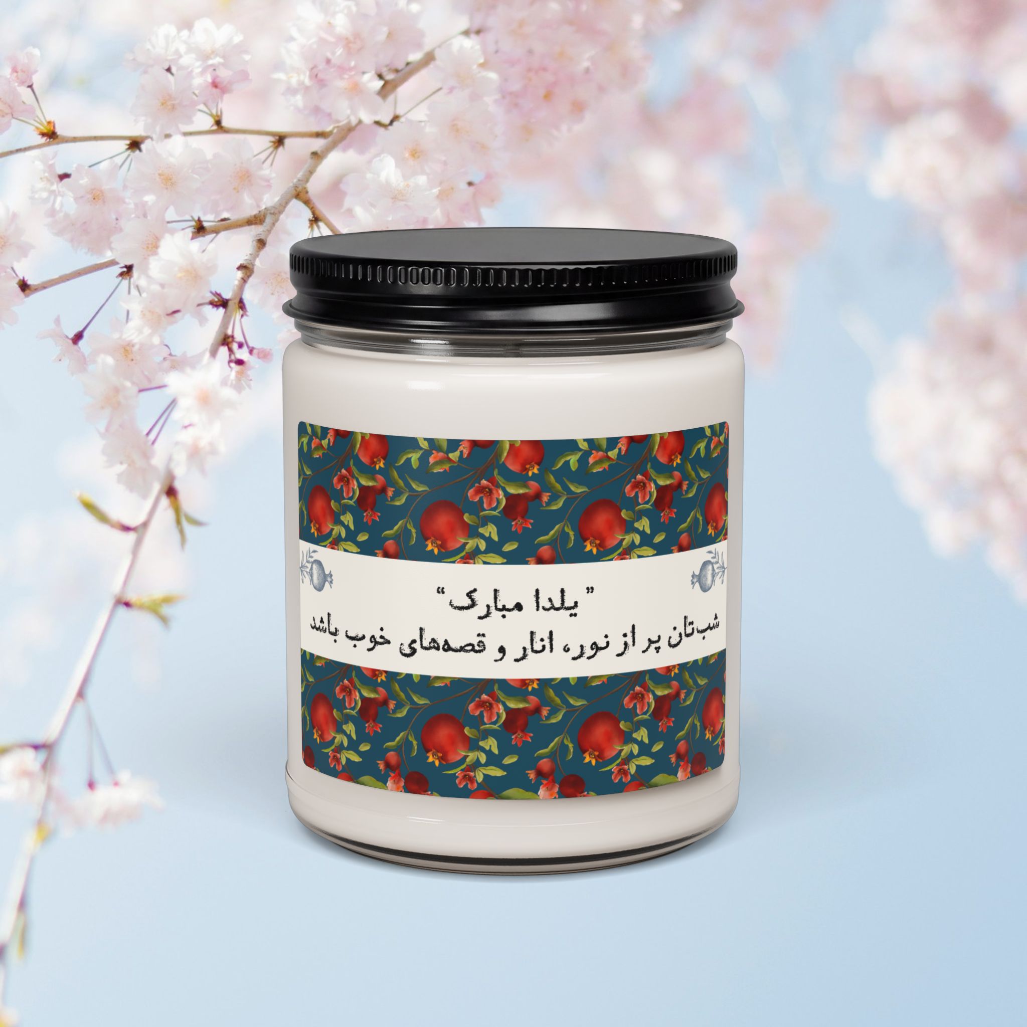 Celebrate Yalda night with a warm, quietly elegant soy candle that brings family and long winter evenings into the same room. The soft glow from the reusable glass vessel casts a calm light while the scent you choose — whether spicy Cinnamon Vanilla, bright Apple Harvest, or soothing White Sage + Lavender — wraps the space in memory and comfort. Lightweight and natural, this candle is made from a 100% soy wax blend with a cotton wick, so it burns cleanly for 50–60 hours and can be repurposed as a little keepsake jar after the wax is gone. The label’s glossy finish gives it a refined look on a table stacked with pomegranates, poetry, and warm tea — the slow, attentive moments of Yalda preserved in scent and light.